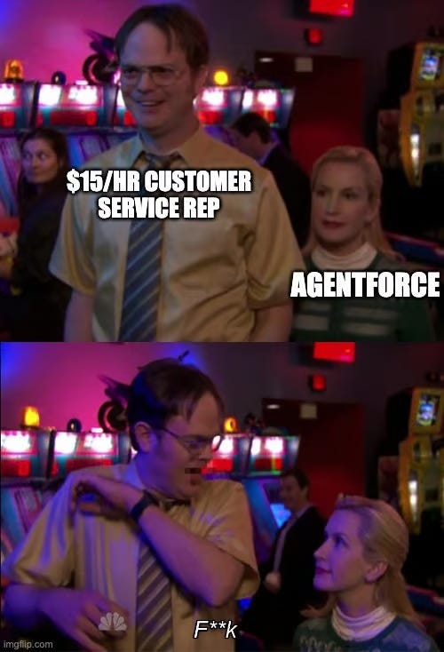 Traditional SaaS players, like Salesforce, have fully plugged into the agent-verse. In what is a complete 180 degree turn, they are going from building structured workflows for humans on top of systems of record to now having an ecosystem of agents that can act autonomously. These agents don’t just read from systems of record but now can write back to them, complete actions, and trigger workflows, all without waiting for a human to click ‘next.’